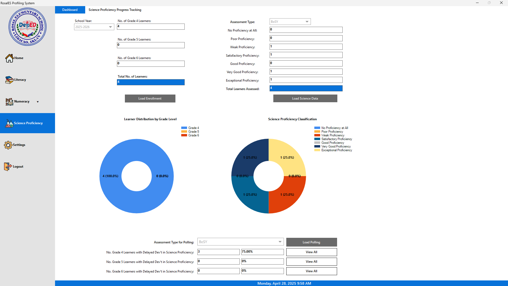 The RosalES Profiling System helps educators monitor student development using standardized assessments, automating grouping and identifying delays.